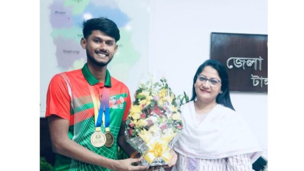 বিশ্ব চ্যাম্পিয়ন স্বর্ণপদক জয়ী বাকপ্রতিবন্ধী স্মরণের পাশে টাঙ্গাইলের জেলা প্রশাসক