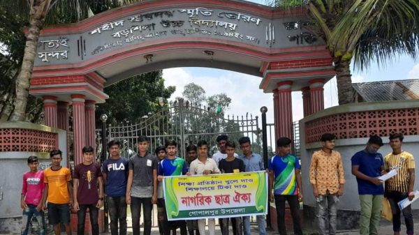 গোপালপুরে শিক্ষালয়ে ভ্যাকসিন ও স্কুল খোলার দাবিতে ছাত্র সমাবেশ