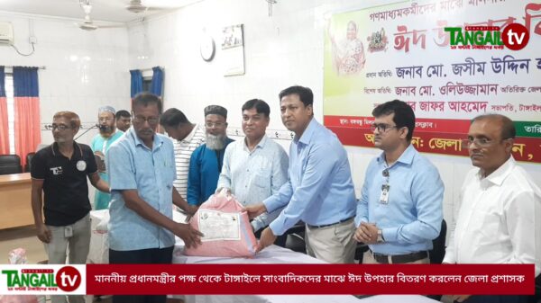 মাননীয় প্রধানমন্ত্রীর পক্ষ থেকে টাঙ্গাইলে গণমাধ্যমকর্মীদের মাঝে ঈদ উপহার বিতরণ
