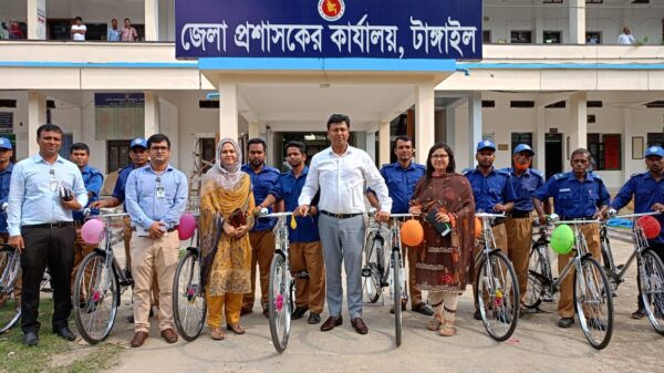 টাঙ্গাইলে গ্রাম পুলিশদের মাঝে বাইসাইকেল বিতরণ।