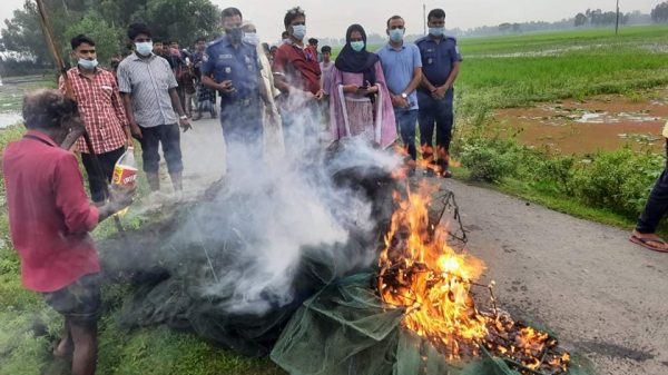 বাসাইলে বিপুল পরিমাণ চায়না জাল ধ্বংস