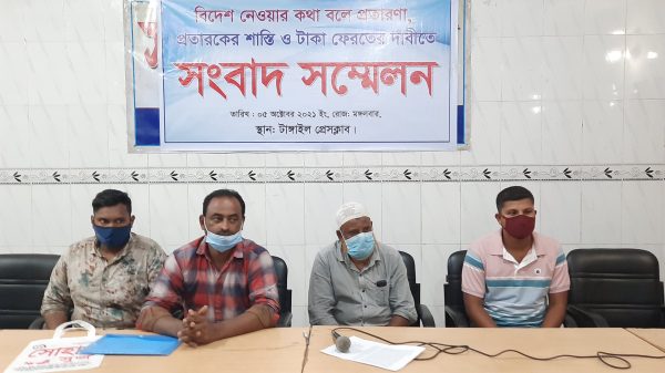 টাঙ্গাইলে বিদেশ পাঠানোর কথা বলে প্রতারণা; টাকা ফেরত ও দালালের শাস্তির দাবিতে সংবাদ সম্মেলন