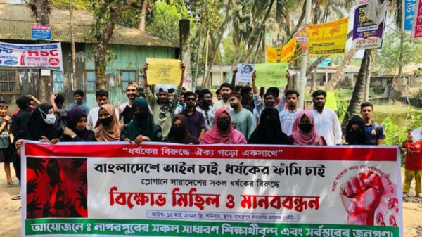নাগরপুরে ধর্ষকের সর্বোচ্চ শাস্তি ফাঁসির দাবিতে বিক্ষোভ ও মানববন্ধন