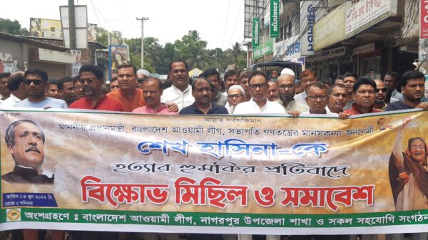 প্রধানমন্ত্রী শেখ হাসিনাকে হত্যা হুমকির’ প্রতিবাদে নাগরপুর আ.লীগের বিক্ষোভ মিছিল